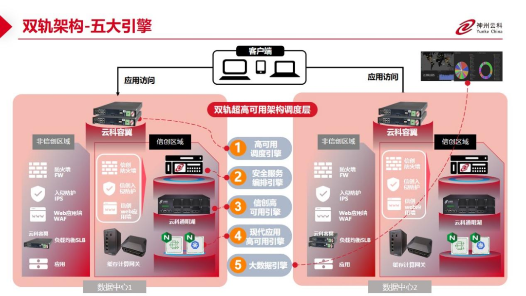 数据中心架构在自主创新的过程中分解为现有架构的非信创区和信创区的两个业务区域,在每个数据中心分为信创区和非信创区后,在两个区域之间的跨区跨域协同方法,kaiyun.com通过5大引擎实现多层次的应用可持续性实践。